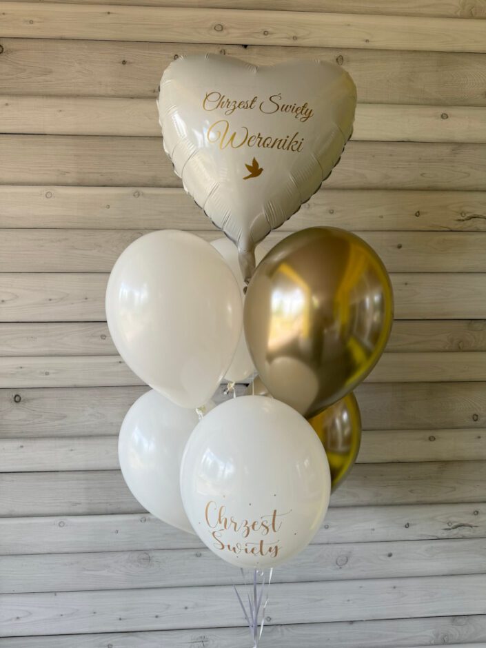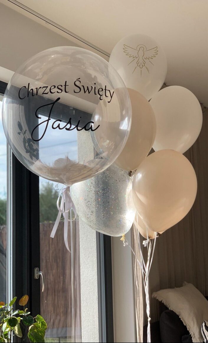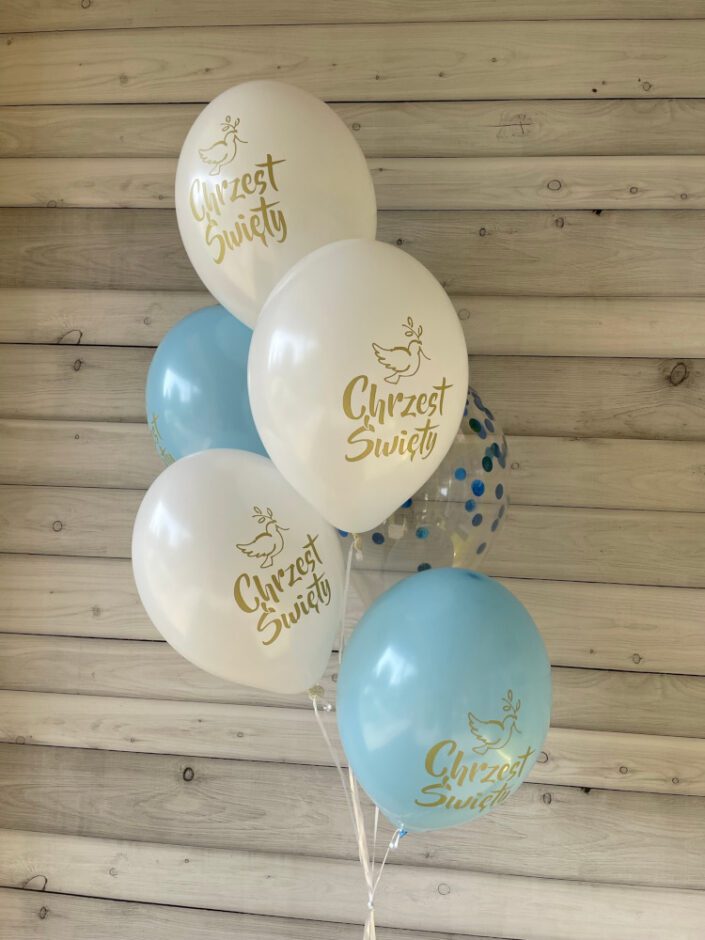 Poniżej propozycje bukietów balonowych: szczególnie polecamy balony z personalizowanym nadrukiem (imieniem dziecka, datą chrzcin) – będą stanowić piękne i znaczące tło do pamiątkowych zdjęć.